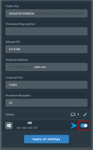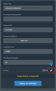 6. Ниже, в разделе Device (Устройства) нажмите на карандаш и выберите устройства, которые должны работать через WireGuard.