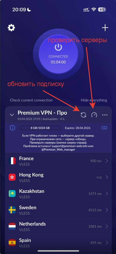 🟢 Как в Happ обновить подписку и проверить доступные серверы